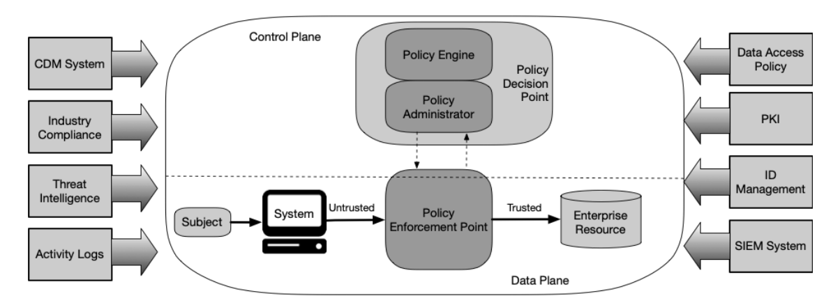 In this framework, the boxes to the left and right represent the tools needed for zero trust. The center depicts the process. Each of those tools provide different functions needed to enable the process – and these tools need to share information and work together. This needs proper integration.